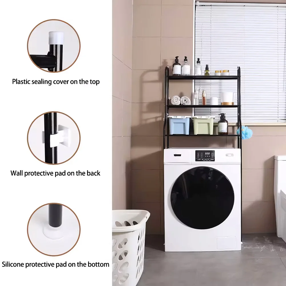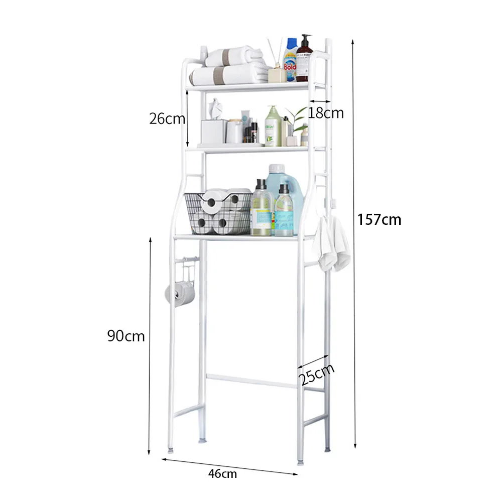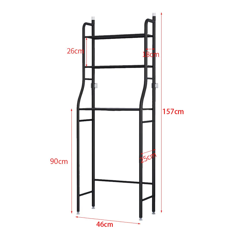 Consists of a high-quality metal frame and a strong rust-resistant black finish, this toilet rack is ideal for organizing towels and toiletries, making efficient use of unused space above the toilet. Three levels of spacious storage space bring you a neat and orderly bathroom, keeping toiletries and bathroom essentials within easy reach. There are four feet pads at the bottom of the storage rack, which can well protect the ground from scratches and ensure the stability of the rack. This space-saving product fits most standard and larger-sized bathrooms, and the classic black complements any decor.