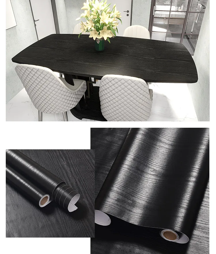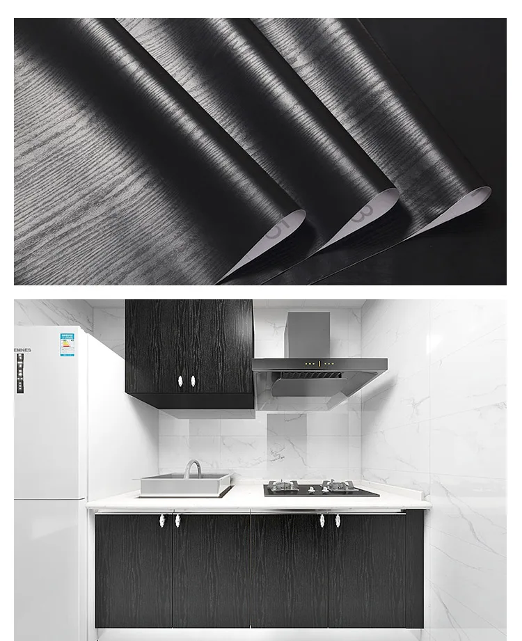 Shop Now0.4x2M Black Furniture Sticker Wood Grain Self-Adhesive Wall Paper Cabinets Wardrobe Desk Waterproof Wooden Door Renovation Film