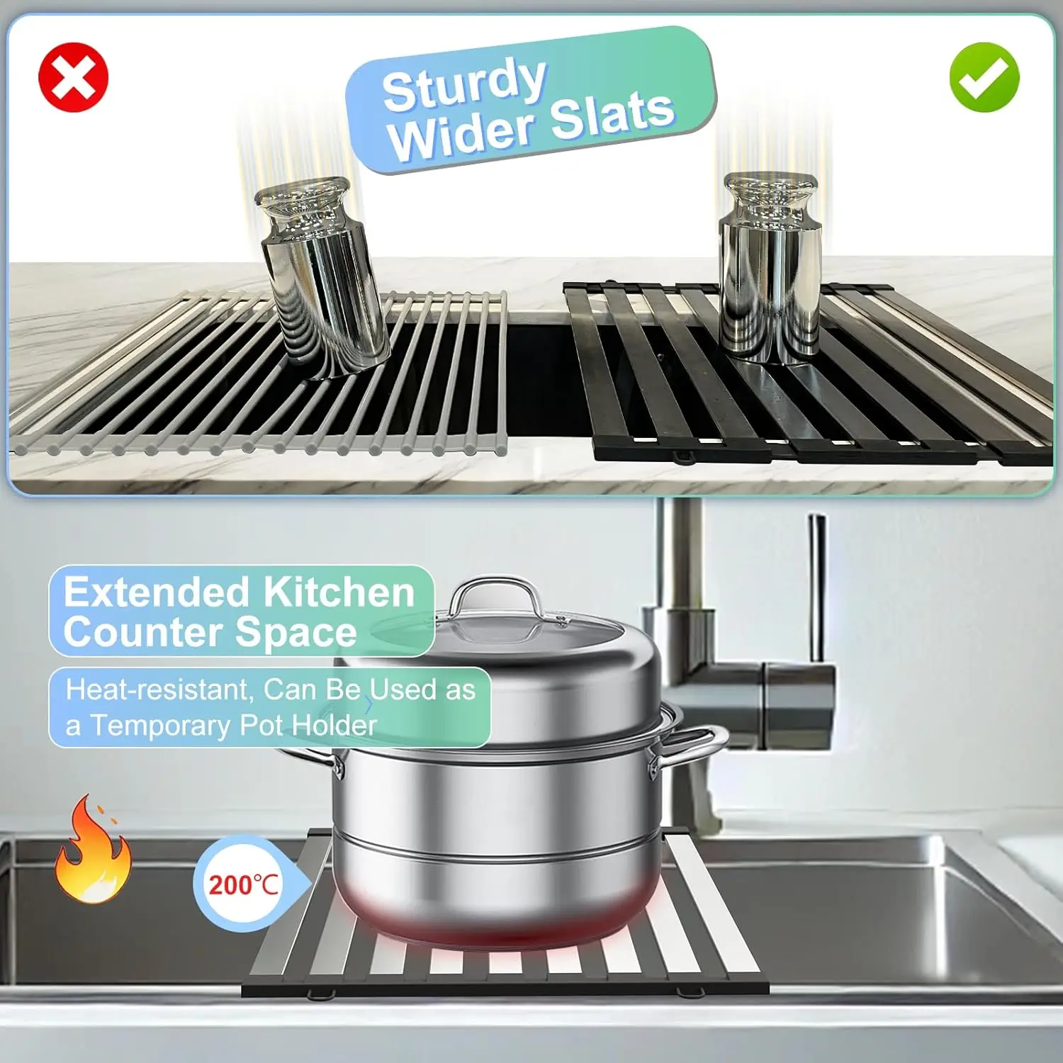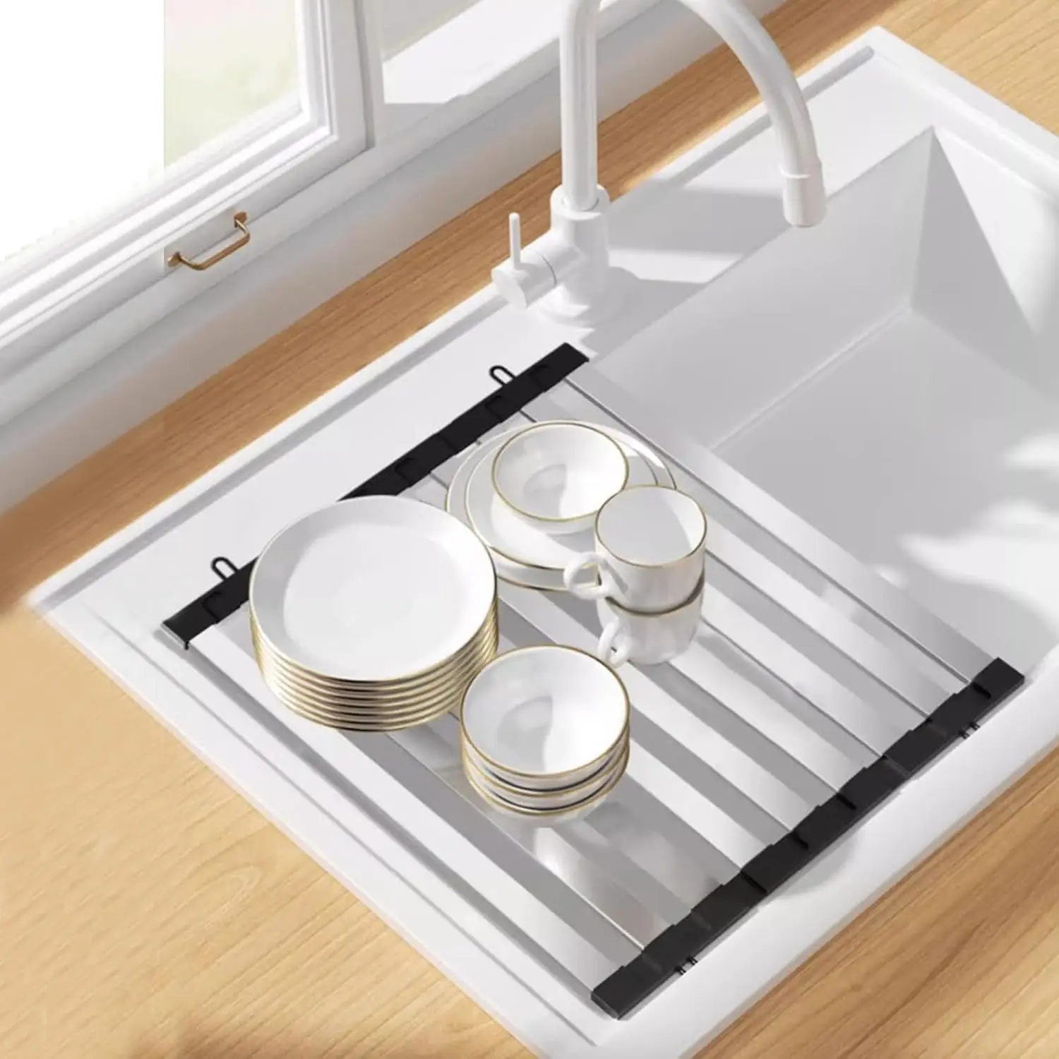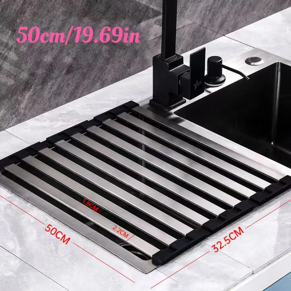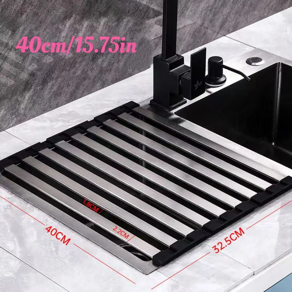 Shop Now1pcs Foldable Roll up Dish Drying Rack over Sink 304 Stainless Steel Anti-Slip Hangable Kitchen Accessory