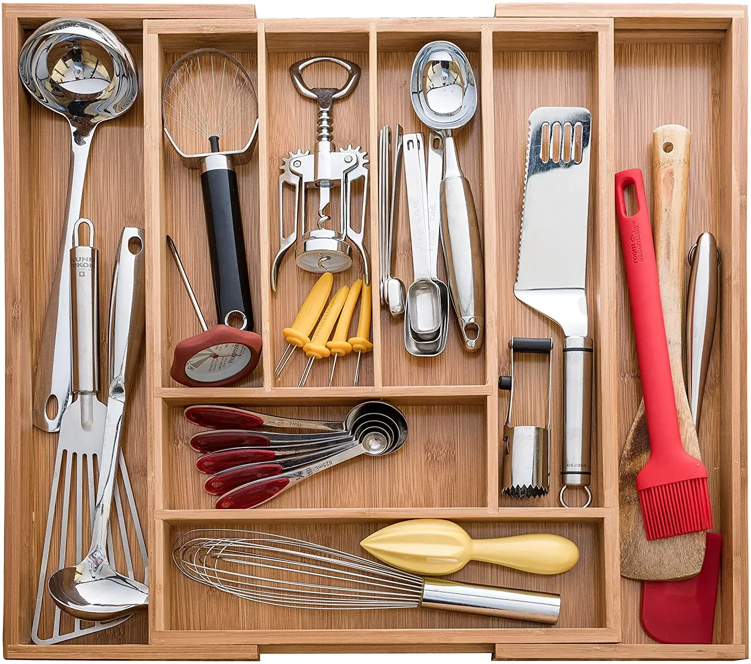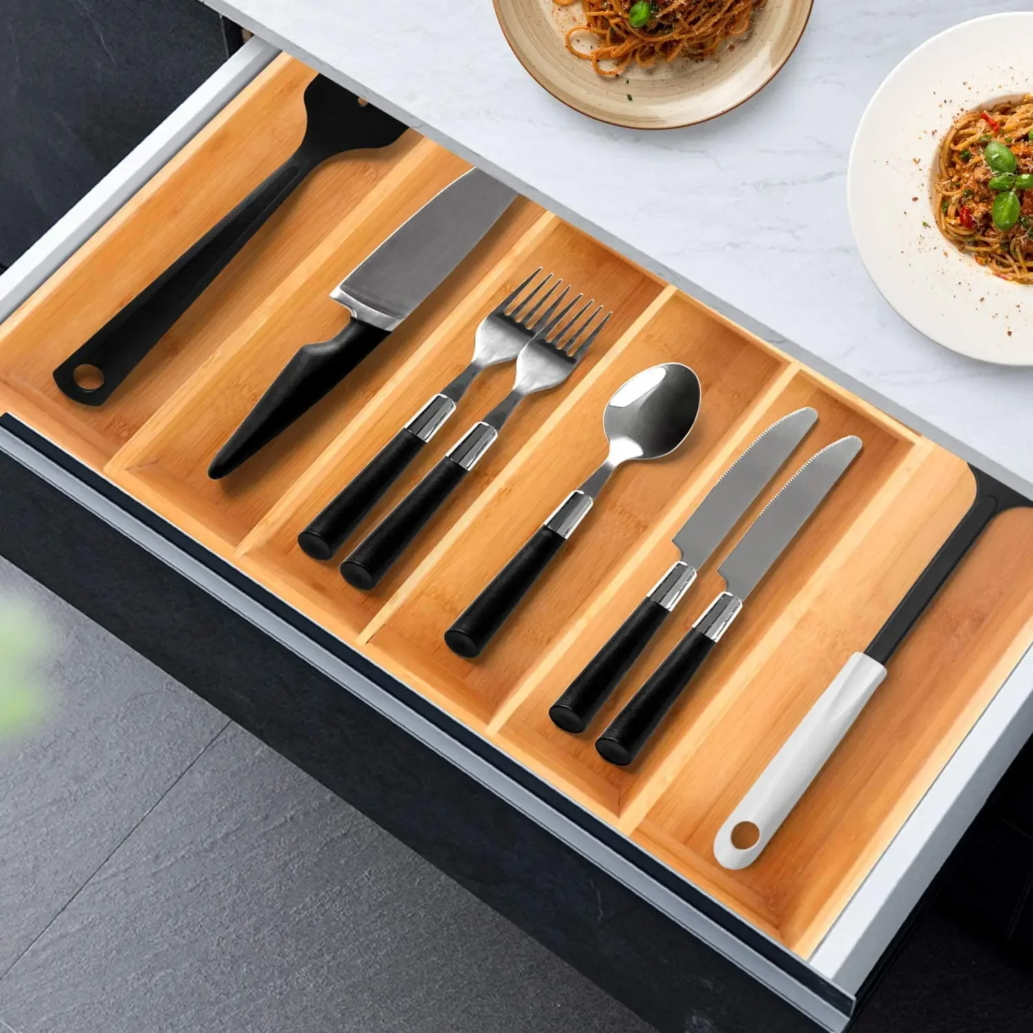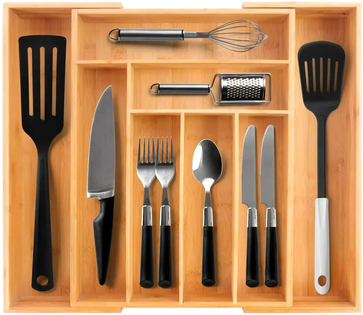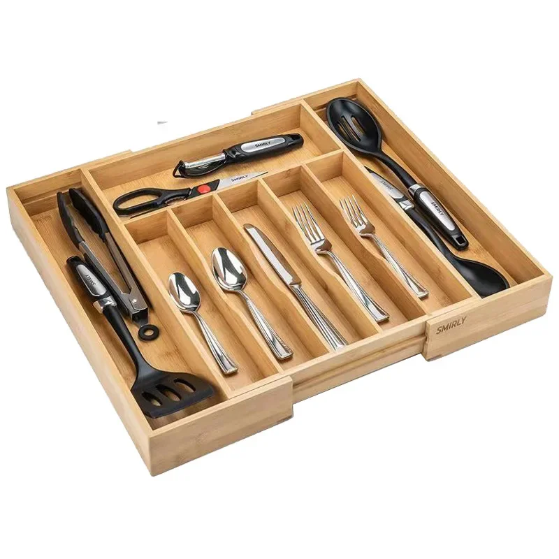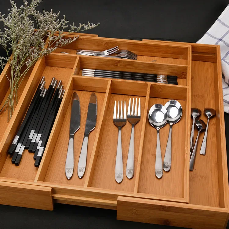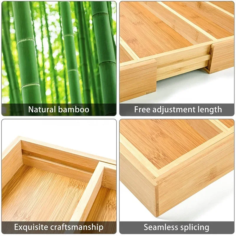 Shop NowAdjustable Bamboo Drawer Organizer for Kitchen Cutlery Utensils Expandable Utensil Holder for Drawer Organization in Bamboo