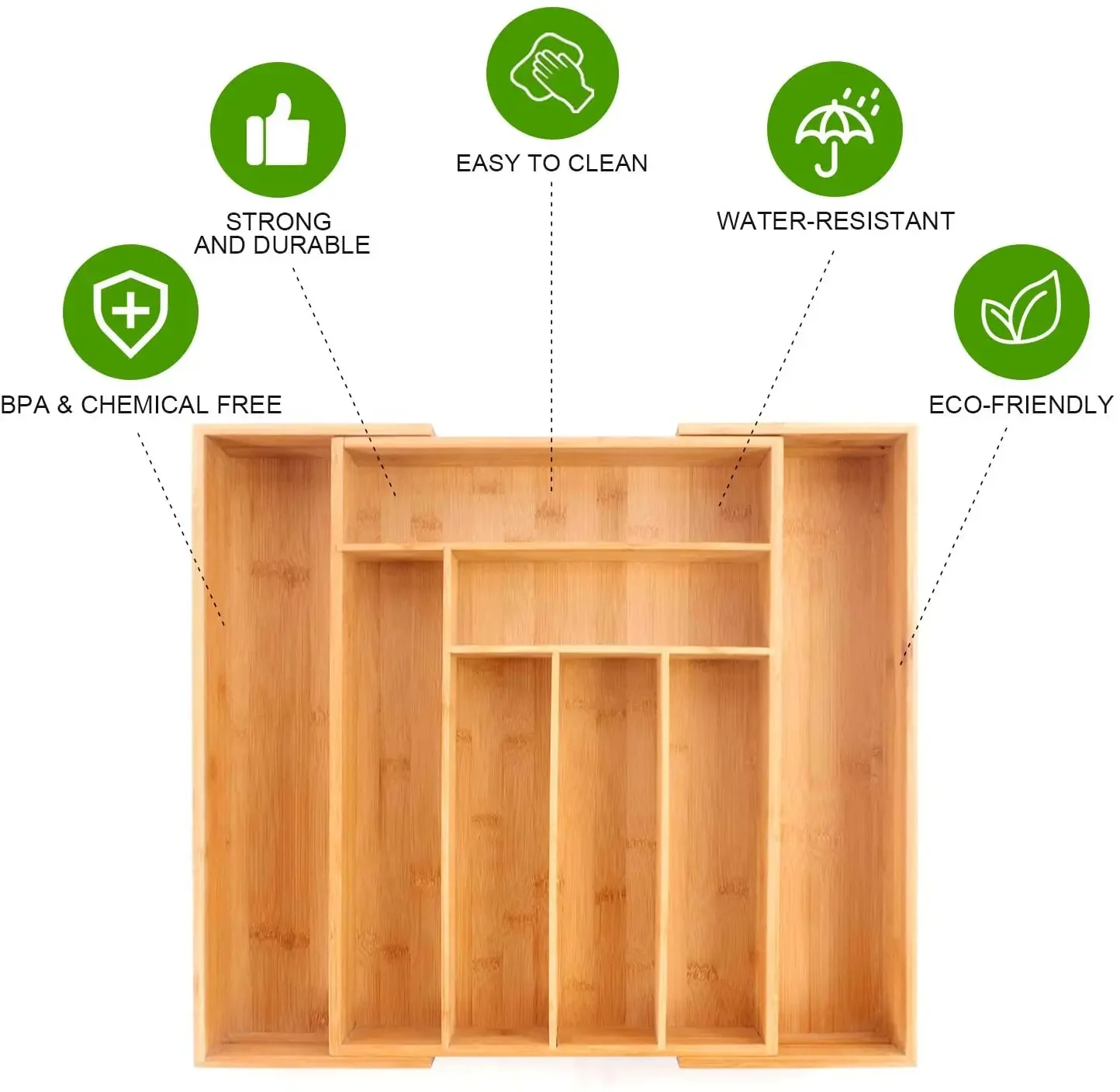 SUPERIOR DESIGN SOLUTIONS: The only bamboo drawer organizer that offers all-in-one features: 100% bamboo (even the base), No Toxic MDF, Slip resistant, Extra Depth, Strong & Durable Construction. This is undoubtedly the best drawer organizer available and our reviews are the testament of the quality.