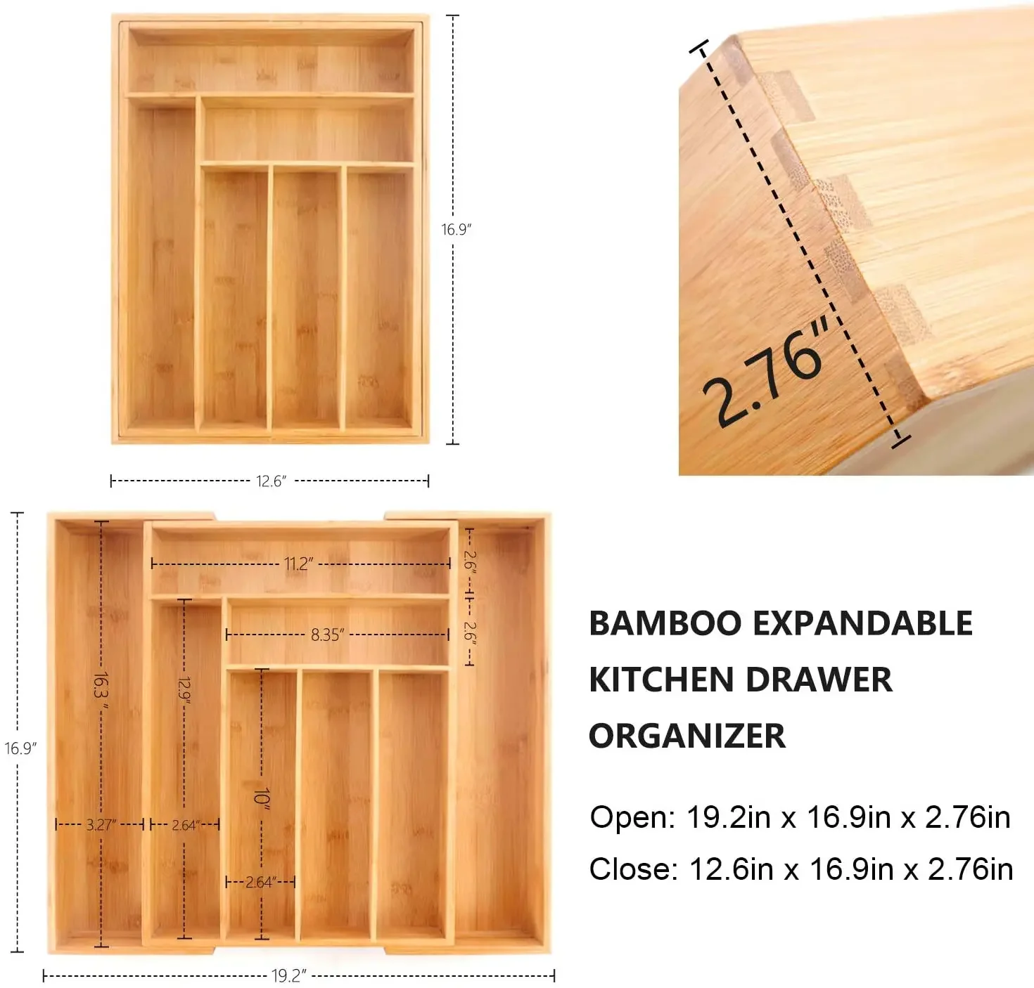 PERFECT SIZE of 17 x 11.8 inches: Of course you can use it as wood silverware organizer or Flatware tray or cutlery tray. But think beyond kitchen and take control of clutter throughout your house – use it in bedroom, bathroom, office, garage, or as a junk drawer organizer. (Please measure your drawer size).