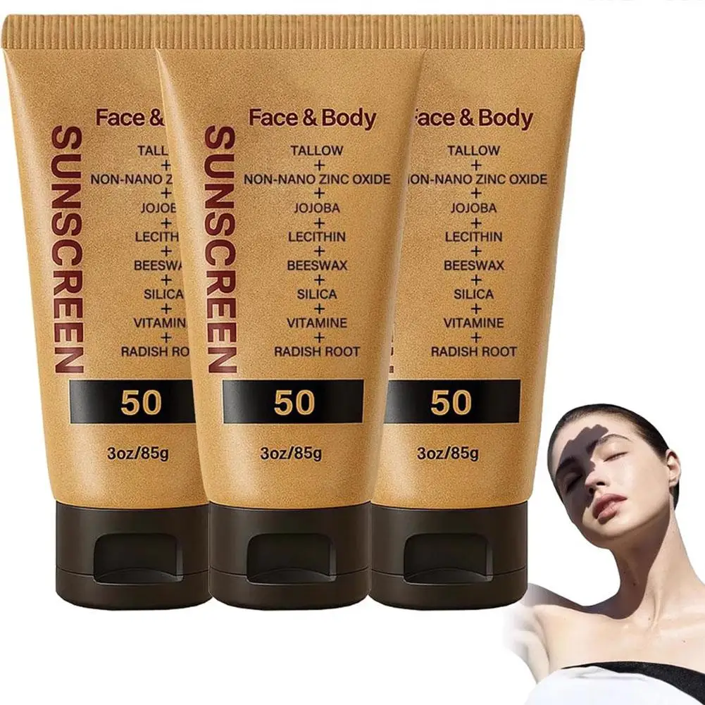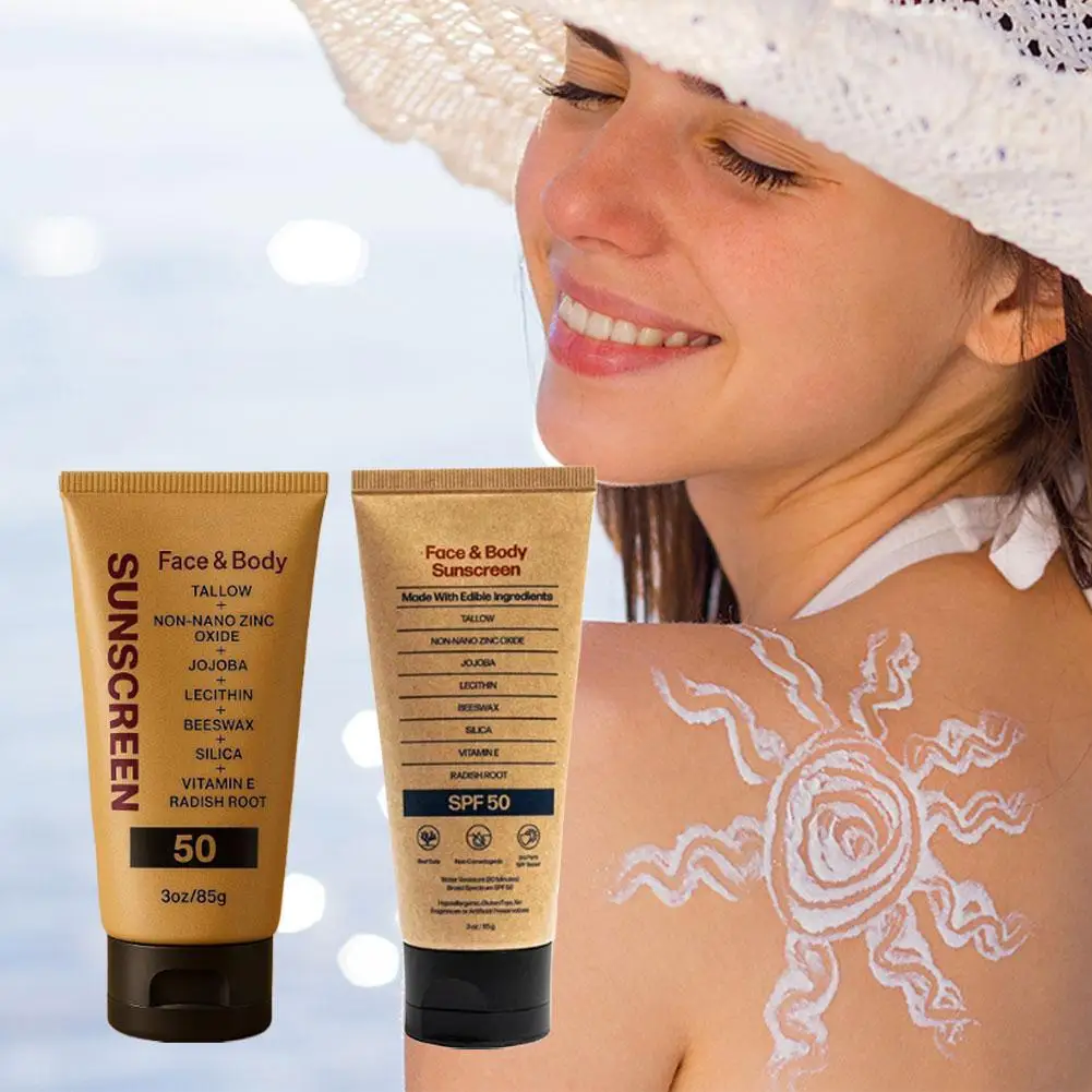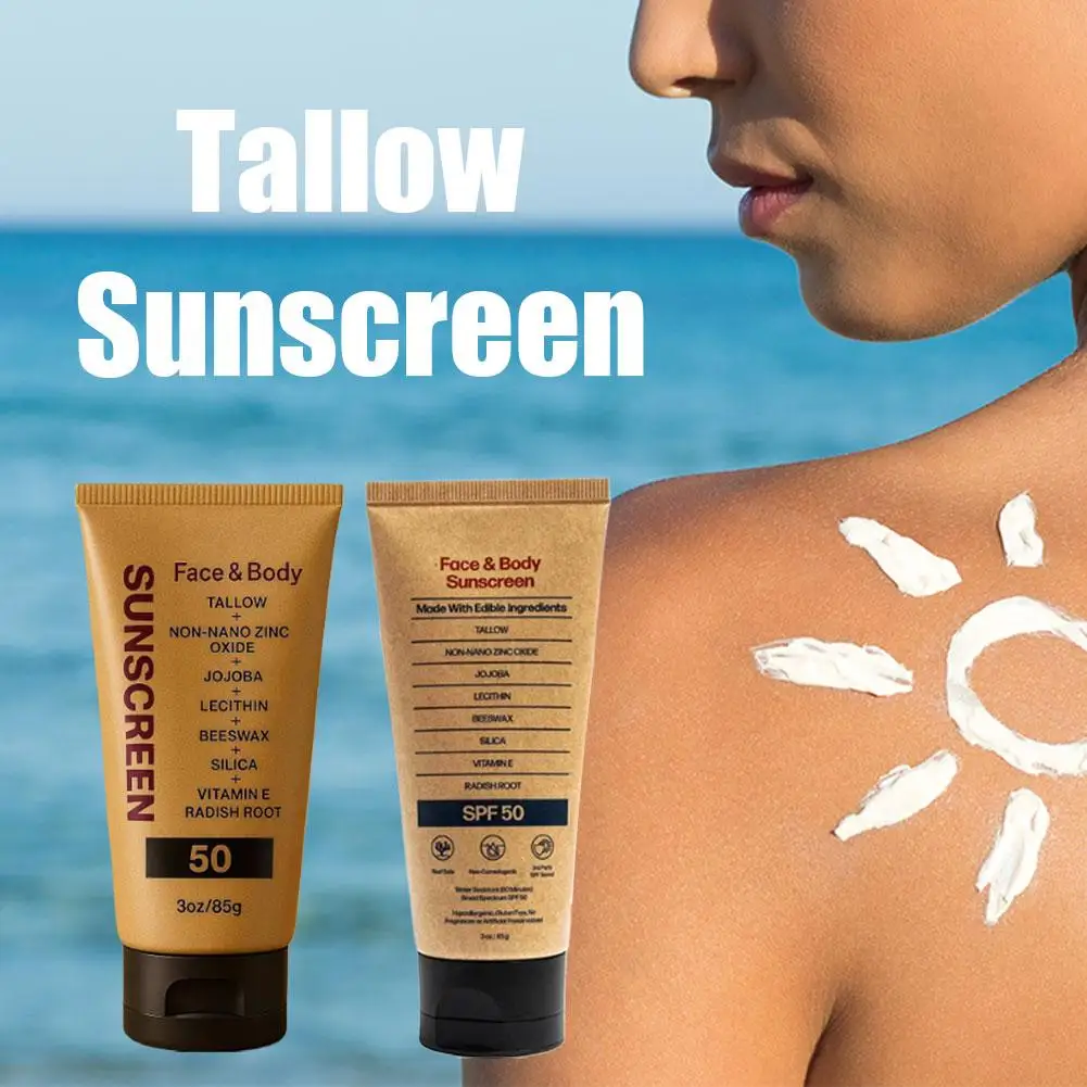 Shop NowBeef Tallow Sunscreen Natural Tasteless Organic Non-greasy Formula Face Cream Spf 50+ UV Protective Sun Block Skin Care