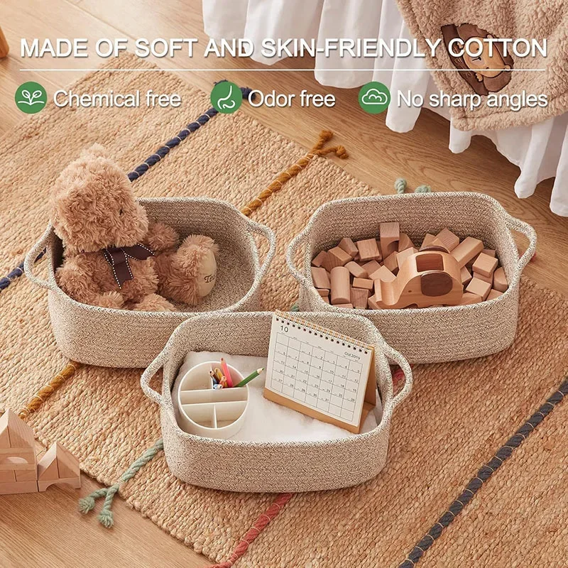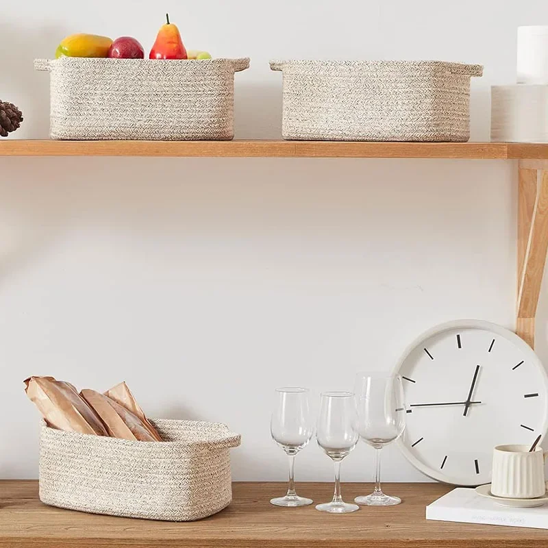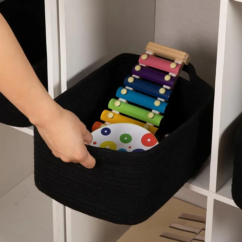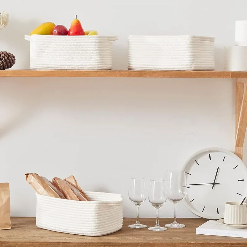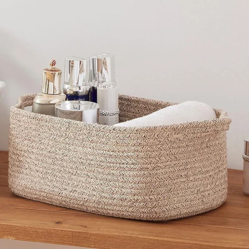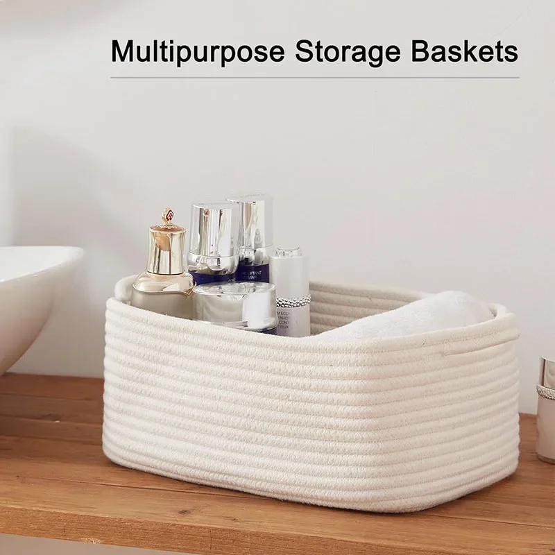 Shop NowDecorative Cotton Rope Storage Basket Rectangular Living Room Miscellaneous Item Organizer Woven Basket Toy Storage Bin