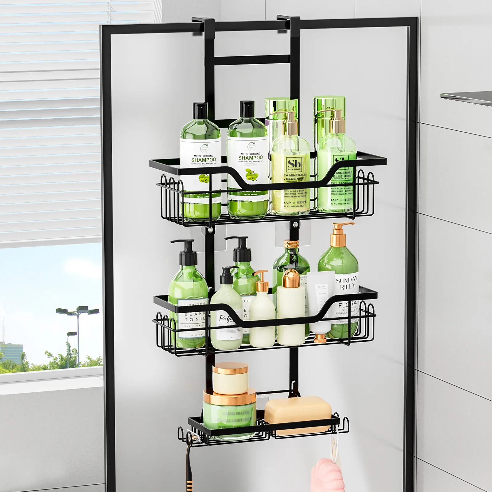 Shop NowDrill-Free Bathroom Shelf Over Door Hanging Organizer Wall-Mounted Basket Rack Multi-Layer Shower Room Storage Shelf for Toilet