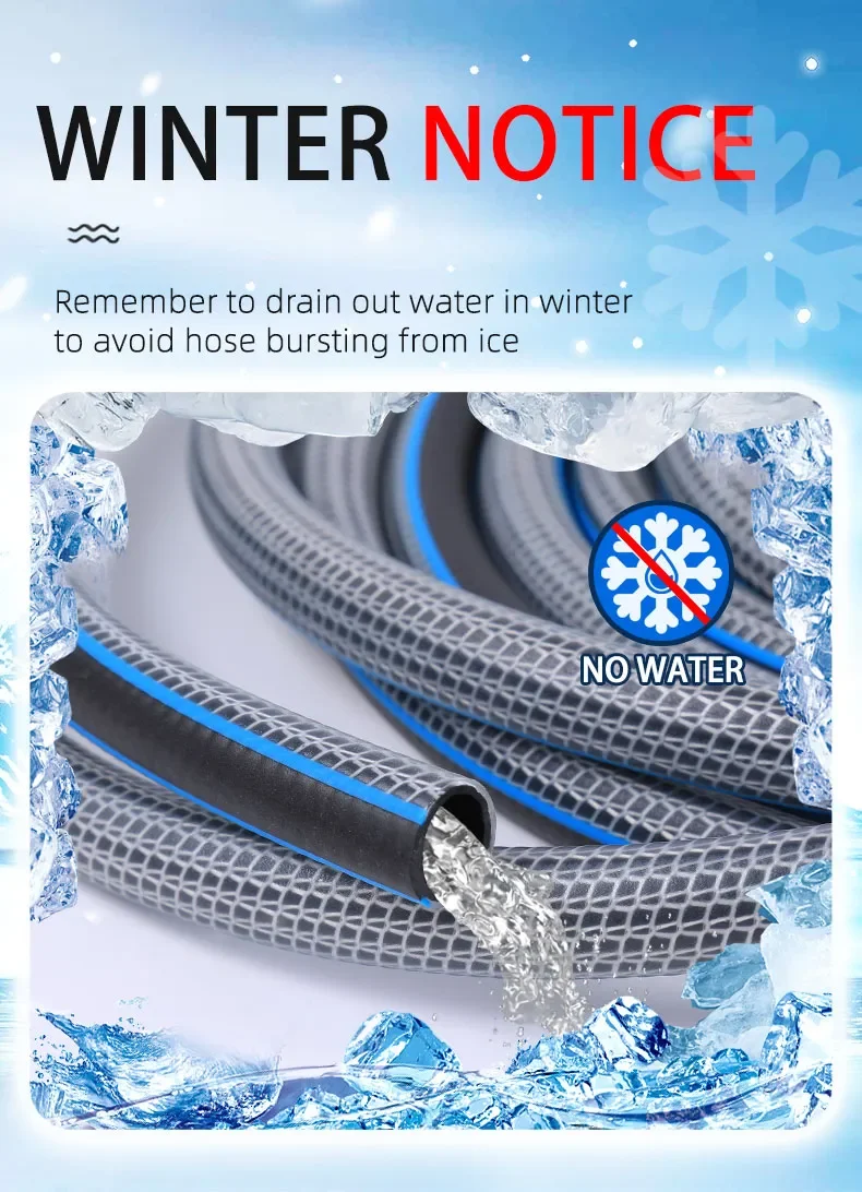3.Drain out water in winter: Please do remember to drain out water when you store your hose in winter to avoid hose bursting from ice