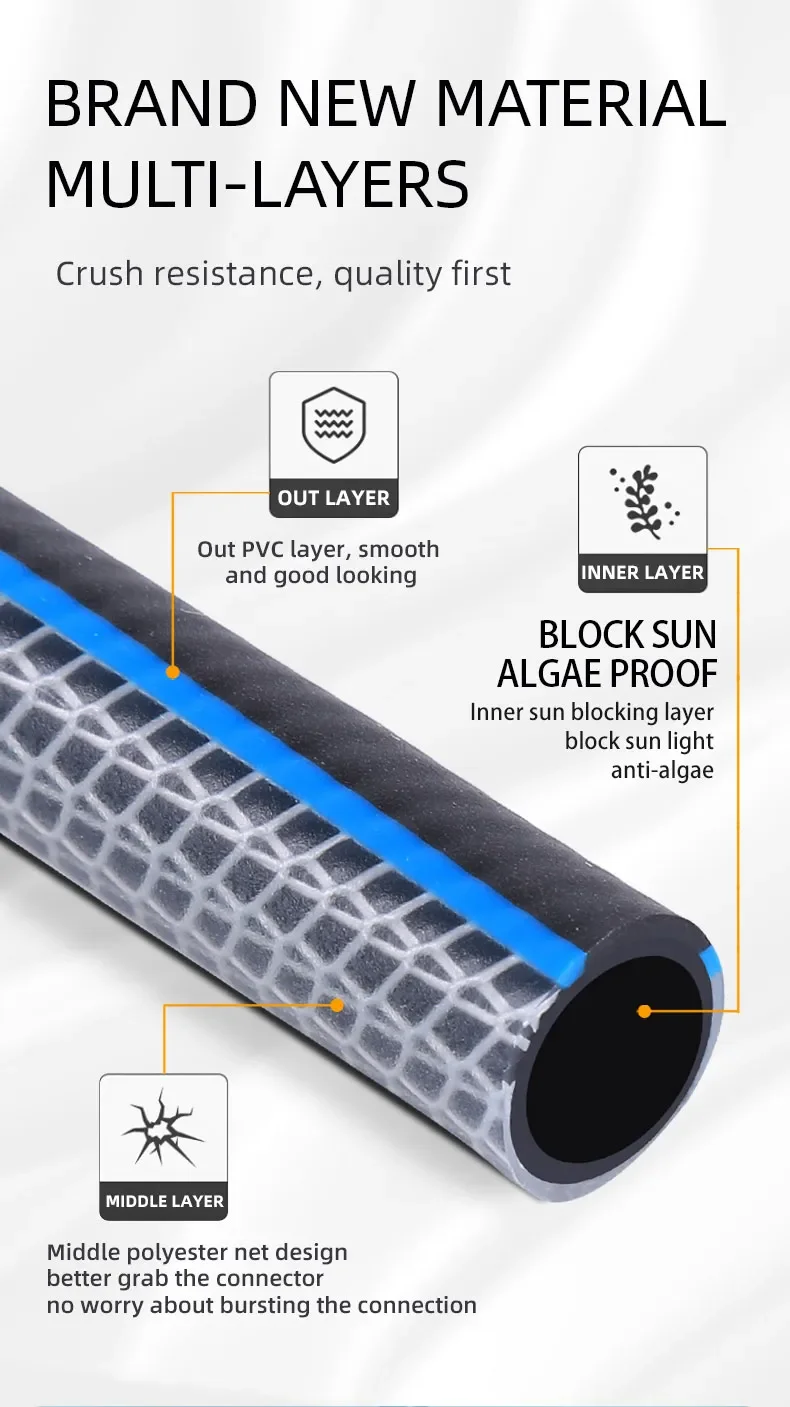 Shop NowKink Resistant Garden Hose Car Washing Accessories PVC Pipe Garden Watering Durable 3 Layers Water Hose For Garden