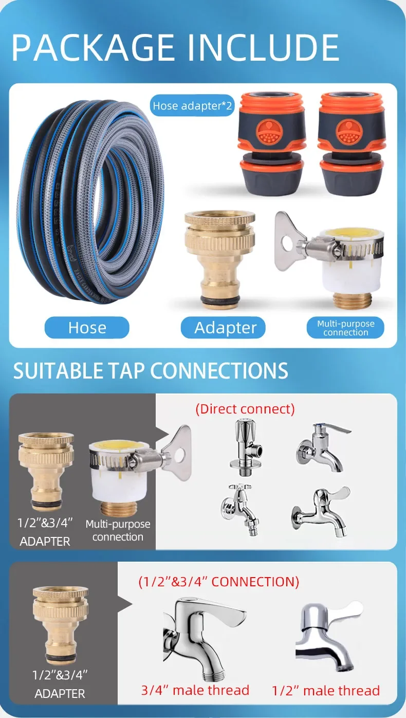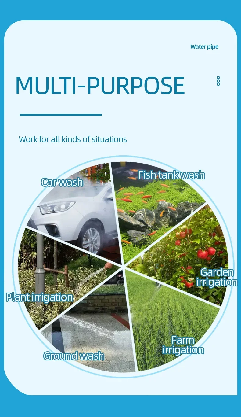 2.Multi-purpose: hose can be used for many situations like car wash, garden watering, ground washing and so on.