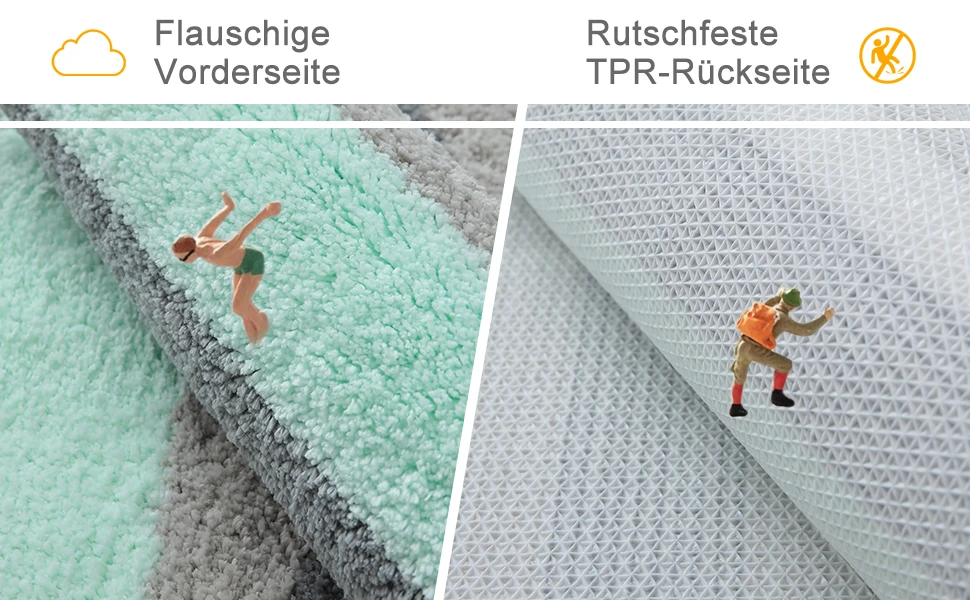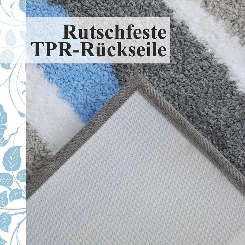 Non-slip backing: the bath mat uses a TPR (thermoplastic) rubber backing which is much stronger and perfect for long-lasting use. The non-slip base prevents any movement, keeping the bath mat in place. It helps protect your family.