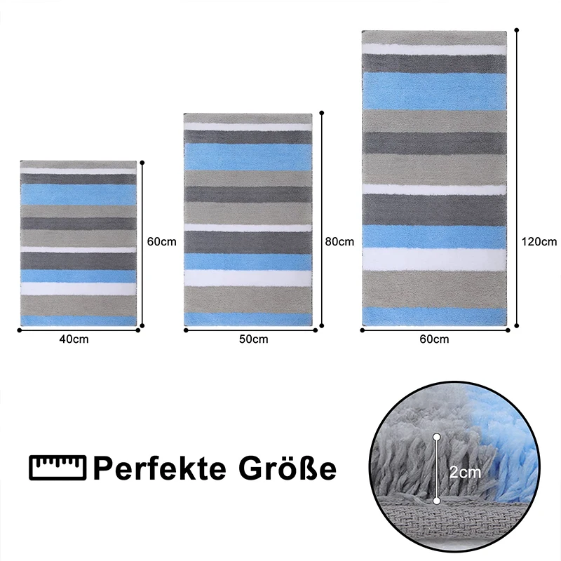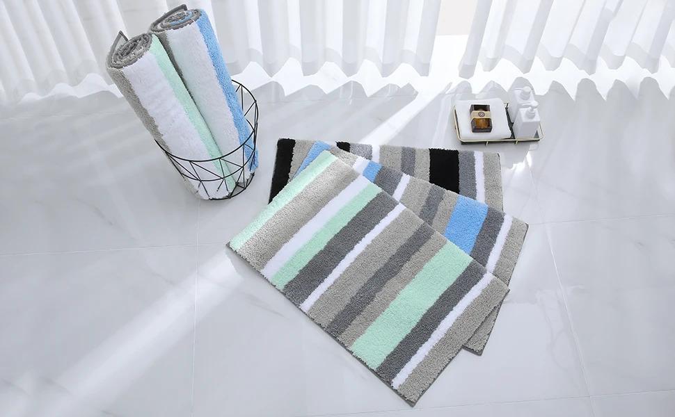 Widely used: this bath mat is available in 4 sizes: 40 x 60 cm, 50 x 80 cm, 40 x 120 cm and 60 x 120 cm. We also have 2 combination sizes: 40 x 60 cm + 50 x 80 cm and 40 x 60 cm + 40 x 120 cm. Classic striped design means they easily match any home decor and can be used in bathrooms, kitchens, bedrooms, living rooms, entrances and even as pet carpets, etc.