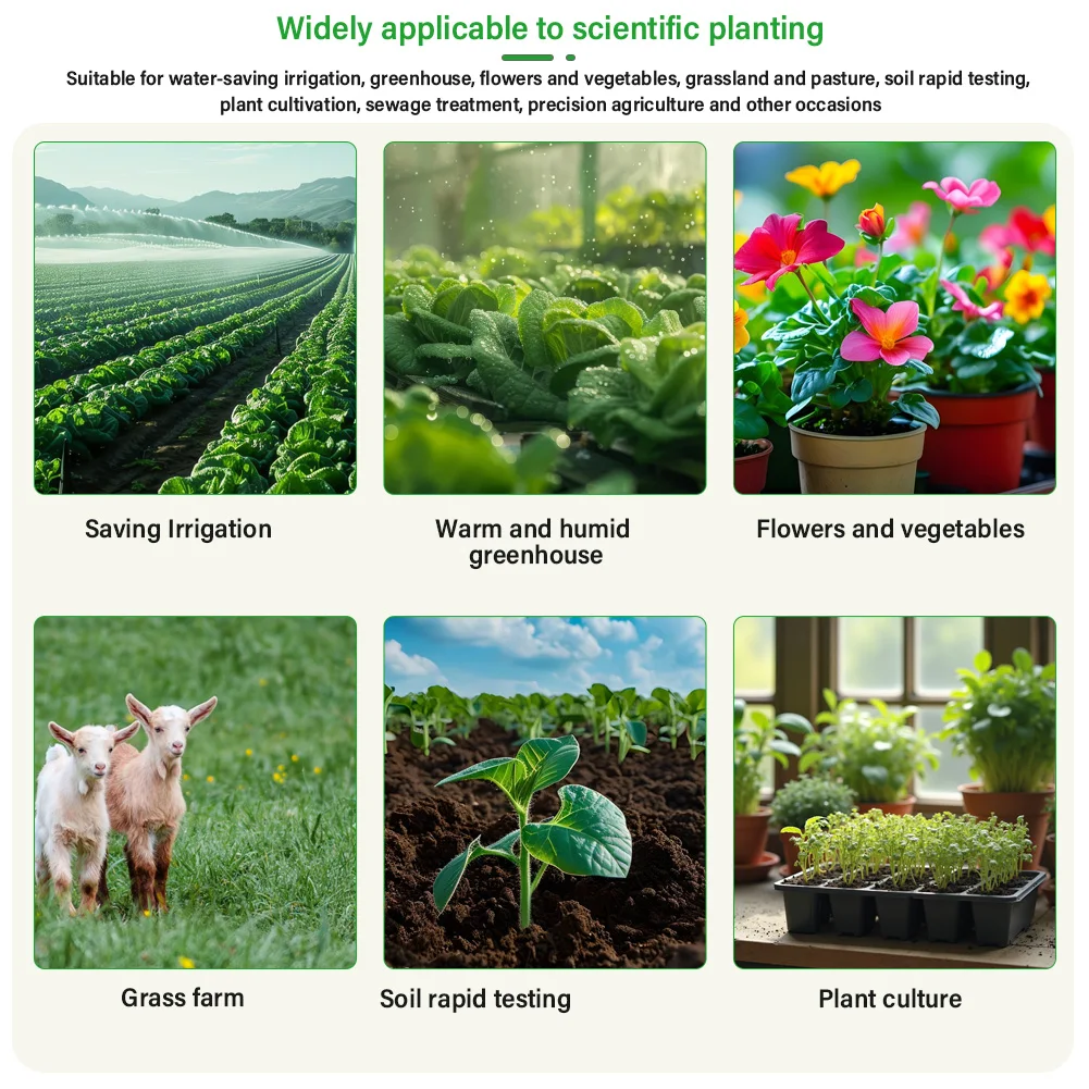 Ideal for agricultural professionals, greenhouse operators, and home gardeners, this soil tester is perfect for various environments, including irrigation systems, soil rapid testing, greenhouse conditions, and plant culture. It helps improve water usage efficiency and promotes healthier plant growth.